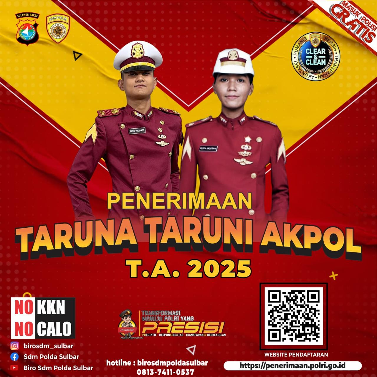 Daerah | Mamuju | News | TNI/Polri | • Februari 11, 2025 • Penerimaan Polri 2025 Resmi Dibuka, Karo SDM Polda Sulbar Ajak Pemuda- Pemudi Sulbar Daftar Gratis! Bersamaan dengan itu, Karo SDM juga memastikan pendaftaran masuk Polisi Gratis. Untuk itu, pihaknya menghimbau...