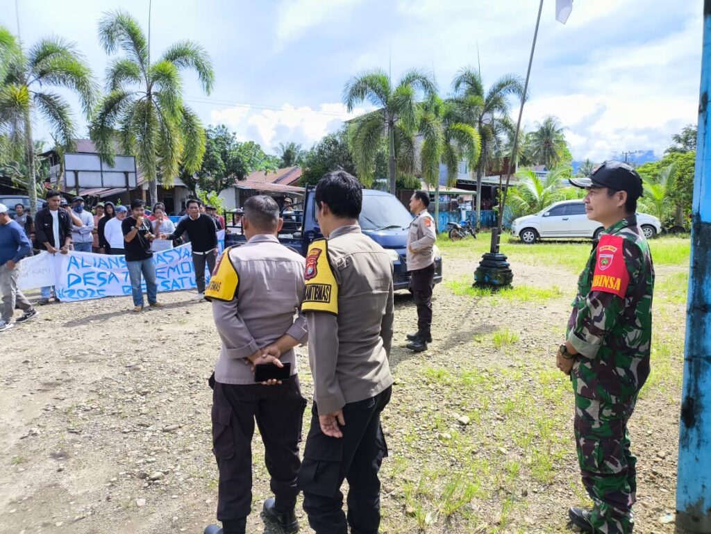 Mamuju, Potretrakyat.com; – Babinsa Kecamatan Tommo bersama personil Polsek Tommo kabupaten Mamuju melaksanakan pengamanan aksi unjuk rasa yang dilakukan oleh Aliansi Masyarakat Desa Tamemongga Bersatu (Tamemongga- Saludengen) di Kantor Kecamatan Tommo Mamuju. Rabu, (22/1/2025).