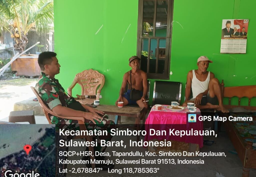 Mamuju, Potretrakyat.com; – Dalam rangka memperkuat tugas pembinaan teritorial, Babinsa Koramil 1418-01/Mamuju, Koptu Ahmad, melaksanakan kegiatan Pengumpulan Data Teritorial (Puldata Ter) di wilayah Kecamatan Simboro dan Kepulauan, Kabupaten Mamuju, Kamis (3/7/2025).