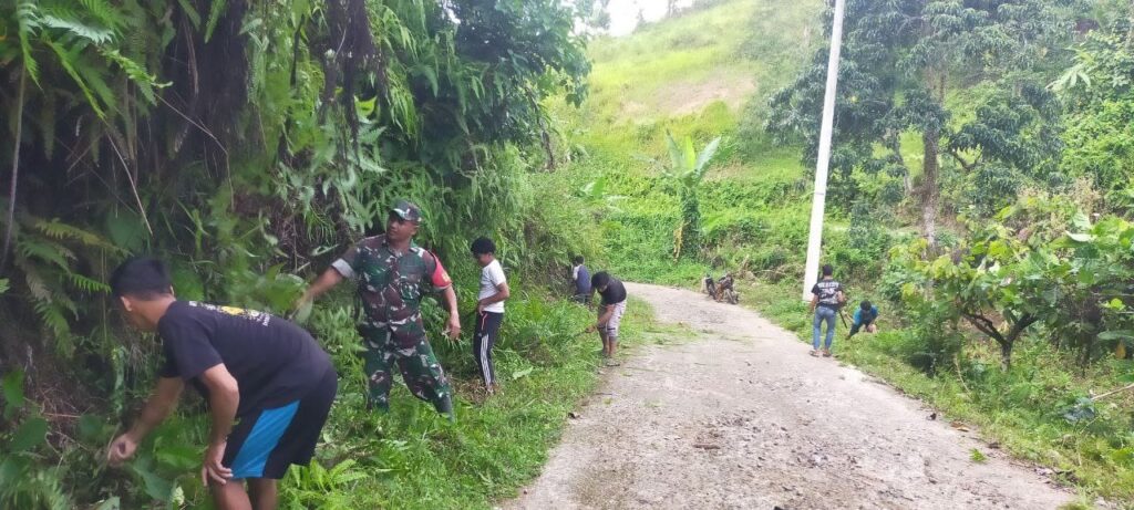 Mamuju, Potretrakyat.com; – Dalam upaya menjaga kebersihan dan kesehatan lingkungan, Babinsa Koramil 1418-02/Tapalang bersama masyarakat melaksanakan karya bakti pembersihan Jalan Tani di Desa Pangasaan, Kecamatan Tapalang Barat, Kabupaten Mamuju. Sabtu (22/2/2025).