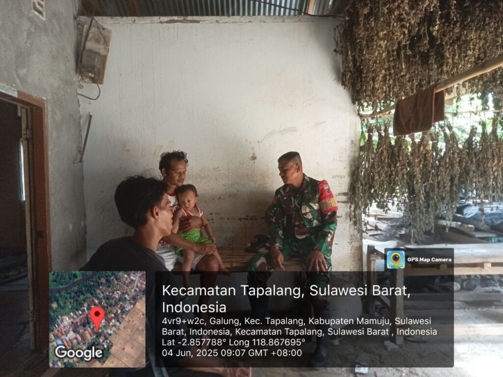 Mamuju, Potretrakyat.com; – Dalam upaya meningkatkan kualitas pembinaan teritorial di wilayah binaan, Bintara Pembina Desa (Babinsa) Koramil 1418-02/Tapalang, Koptu Muh Asri, melaksanakan kegiatan Puldata (Pengumpulan Data Teritorial) di Kecamatan Tapalang, Kabupaten Mamuju. Rabu (4/6/2025).