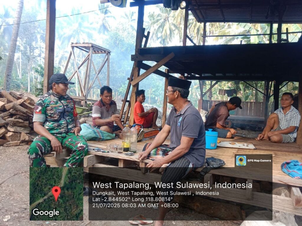 Mamuju, Potretrakyat.com; – Dalam upaya meningkatkan pengawasan teritorial dan memperkuat hubungan dengan masyarakat, Babinsa Koramil 1418-02/Tapalang, Koptu Syamsuddin, melaksanakan kegiatan pengumpulan data teritorial (Puldata) di wilayah Kecamatan Tapalang, Kabupaten Mamuju. Senin (21/7/2025).