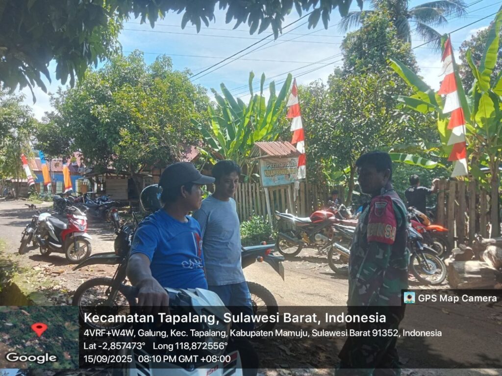 Mamuju, Potretrakyat.com; – Babinsa Koramil 1418-02/Tapalang, Koptu Asri, melaksanakan kegiatan Pengumpulan Data Teritorial (Puldata) di wilayah Kecamatan Tapalang, Kabupaten Mamuju. Kegiatan ini bertujuan memperbarui data kewilayahan sekaligus mempererat komunikasi dengan masyarakat setempat. Senin (15/9/2025).