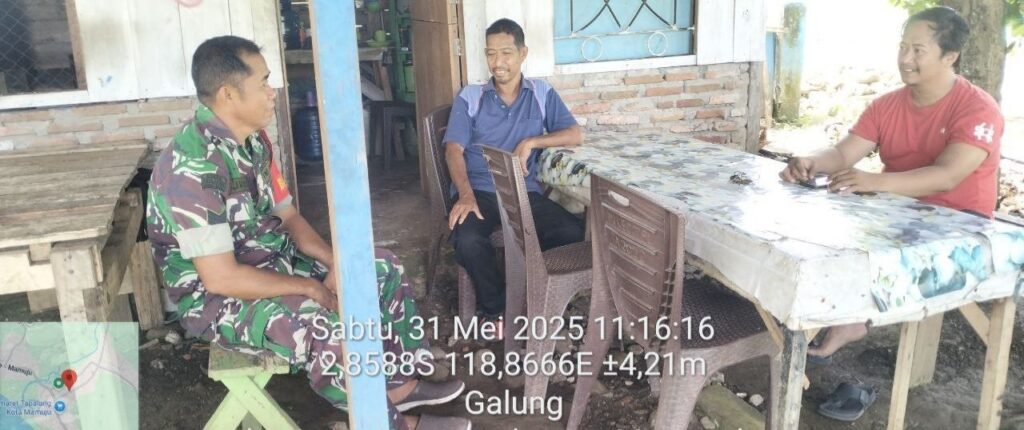 Mamuju, Potretrakyat.com; — Dalam rangka menjalankan tugas kewilayahan, Babinsa Koramil 1418-02/Tapalang, Serka Jusri, melaksanakan kegiatan Puldata Teritorial (Pengumpulan Data Teritorial) di wilayah Kecamatan Tapalang, Kabupaten Mamuju. Sabtu (31/5/2025).