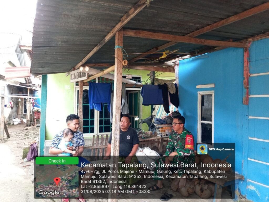 Mamuju, Potretrakyat.com; – Babinsa Koramil 1418-02/Tapalang, Serda Andi Tahir, melaksanakan kegiatan Pengumpulan Data Teritorial (Puldata) di wilayah Kecamatan Tapalang, Kabupaten Mamuju. Kegiatan ini bertujuan untuk memperbarui informasi kondisi wilayah sekaligus mempererat komunikasi dengan masyarakat. Minggu (31/8/2025).
