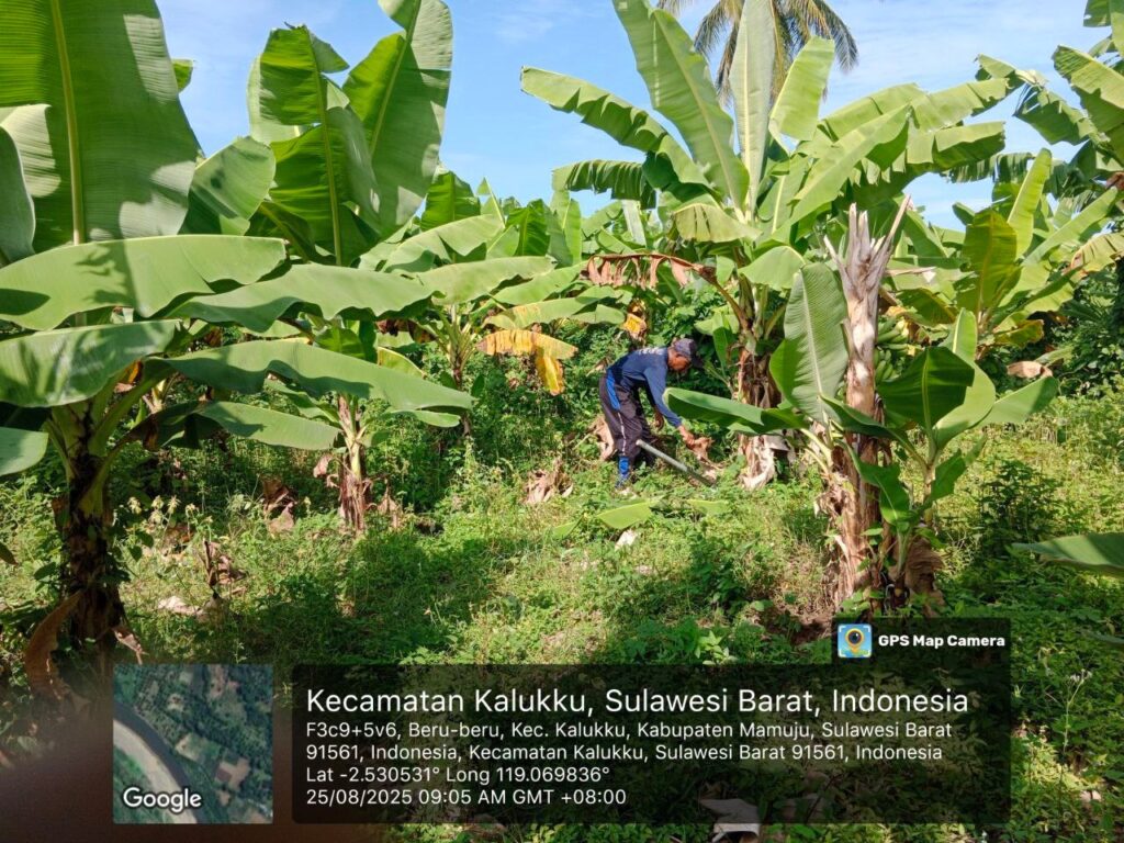 Mamuju, Potretrakyat.com; – Babinsa Koramil 1418-03/Kalukku terus aktif mendukung program ketahanan pangan melalui kegiatan perawatan tanaman pisang cavendis dan pemeliharaan kolam ikan nila ,di Dusun Taraweh, Desa Beru-beru, Kecamatan Kalukku, Kabupaten Mamuju. Senin (25/8/2025).