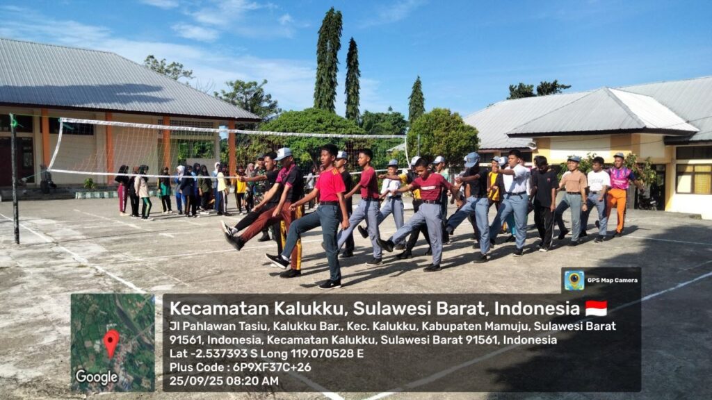 Mamuju, Potretrakyat.com; – Dalam rangka mewujudkan generasi muda yang berkarakter dan berdisiplin, Babinsa Desa Uhaimate Koramil 1418-03/Kalukku, Serma Jemmi Manua, S.Sos., melaksanakan kegiatan Perlawanan Wilayah (Wanwil) pembentukan karakter siswa serta memberikan pelatihan Baris-Berbaris (PBB) kepada para pelajar SMK Negeri Kalukku, Kecamatan Kalukku, Kabupaten Mamuju, Kamis (25/9/2025).
