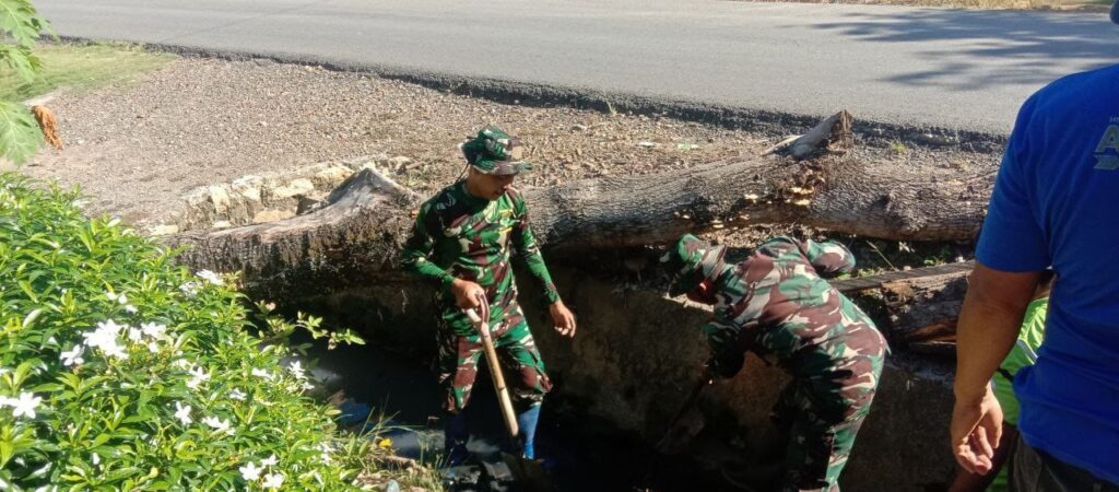 Mamuju Tengah, Potretrakyat.com; – Dalam rangka meningkatkan kesadaran masyarakat akan pentingnya menjaga kebersihan lingkungan, personel Koramil 1418-04/Budong-Budong melaksanakan kegiatan karya bakti berupa pembersihan saluran air di Jalan Pasar Baru, Kelurahan Topoyo, Kecamatan Topoyo, Kabupaten Mamuju Tengah, pada Kamis (19/6/2025).