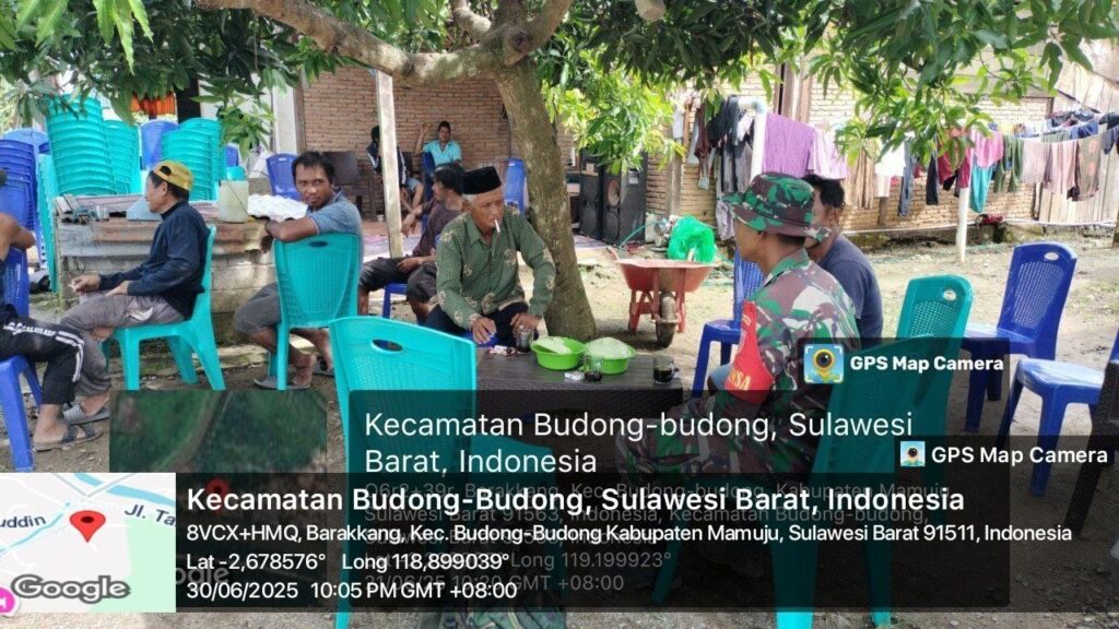 Mamuju Tengah, Potretrakyat.com; – Dalam upaya mempererat kemitraan antara TNI dan masyarakat serta menjaga stabilitas wilayah, Babinsa Koramil 1418-04/Mamuju, Kopda Saril, melaksanakan pembinaan wilayah sekaligus komunikasi sosial (Komsos) bersama masyarakat di Desa Barakkang, Kecamatan Mamuju, Kabupaten Mamuju. Senin (30/6/2025).