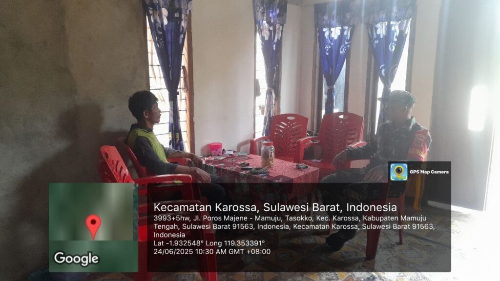 Mamuju Tengah, Potretrakyat.com; – Upaya menciptakan lingkungan yang aman dan kondusif terus dilakukan oleh jajaran TNI melalui peran Babinsa di wilayah binaannya. Seperti yang dilakukan oleh Kopda Natan Tito, anggota Koramil 1418-04/Budong-Budong yang juga Babinsa Desa Tasokko, saat melaksanakan kegiatan pembinaan wilayah yang dilanjutkan dengan komunikasi sosial (komsos) bersama para siswa di Desa Tasokko, Selasa (24/6/2025).