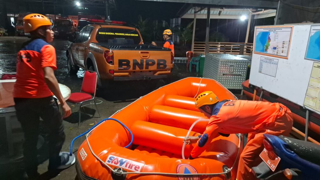 Mamuju, Potretrakyat.com; — Tim Reaksi Cepat (TRC) BPBD Provinsi Sulawesi Barat (Sulbar) melakukan persiapan dan pengecekan peralatan perahu karet sebagai langkah cepat menghadapi kondisi banjir yang terjadi di beberapa titik wilayah Kota Mamuju, Minggu malam (26 Oktober 2025).