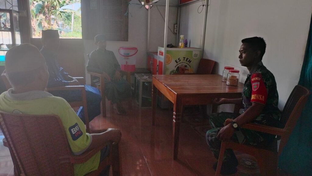 Mamuju Tengah, Potretrakyat.com; – Babinsa Koramil 1418-04/Budong-Budong, Serda Galingging, yang bertugas di Desa Tumbu, melaksanakan kegiatan pembinaan wilayah yang dilanjutkan dengan komunikasi sosial (komsos) bersama masyarakat setempat. Kegiatan ini bertujuan untuk mempererat hubungan antara TNI dan rakyat serta memberikan pemahaman penting terkait keamanan dan ketertiban di lingkungan desa. Senin (9/6/2025).