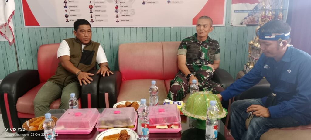 Mamuju, Potretrakyat.com – Komandan Komando Distrik Militer (Dandim) 1418/Mamuju, Letkol ARM Andang Radianto, S. A.P. , melaksanakan kunjungan silaturahmi ke Sekretariat Ikatan Jurnalis Sulbar (IJS) di Mamuju pada hari ini, Kamis, 23/10/25. Kunjungan ini bertujuan untuk mempererat kemitraan dan sinergi antara TNI, khususnya Kodim 1418/Mamuju, dengan insan pers di Sulawesi Barat.