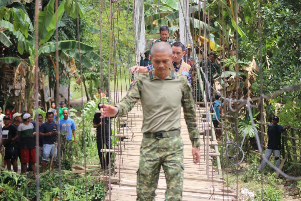 Kodim 1418/Mamuju juga mengerahkan personel Koramil 1418-05/Kalumpang untuk membantu pengamanan lokasi, evakuasi, serta perbaikan darurat jembatan dengan dukungan material berupa tali sling baja dan perlengkapan pendukung lainnya.