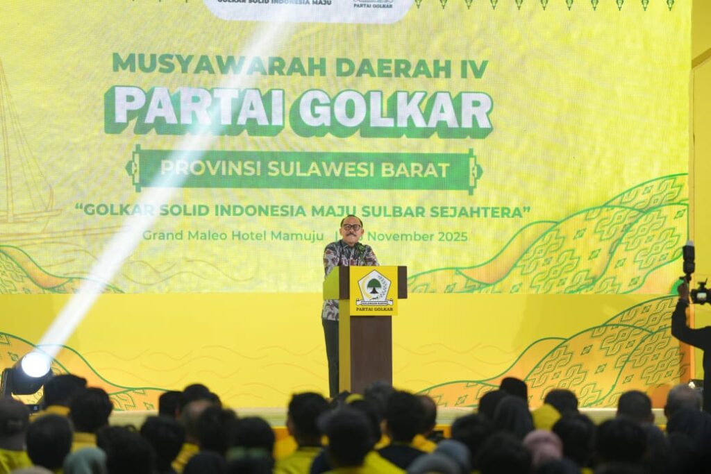 Mamuju, Potretrakyat.com; – Gubernur Sulbar, Suhardi Duka (SDK), menghadiri pembukaan Musyawarah Daerah (Musda) IV Partai Golkar Sulawesi Barat yang digelar di Ballroom Hotel Maleo, Mamuju, Minggu, 23 November 2025.