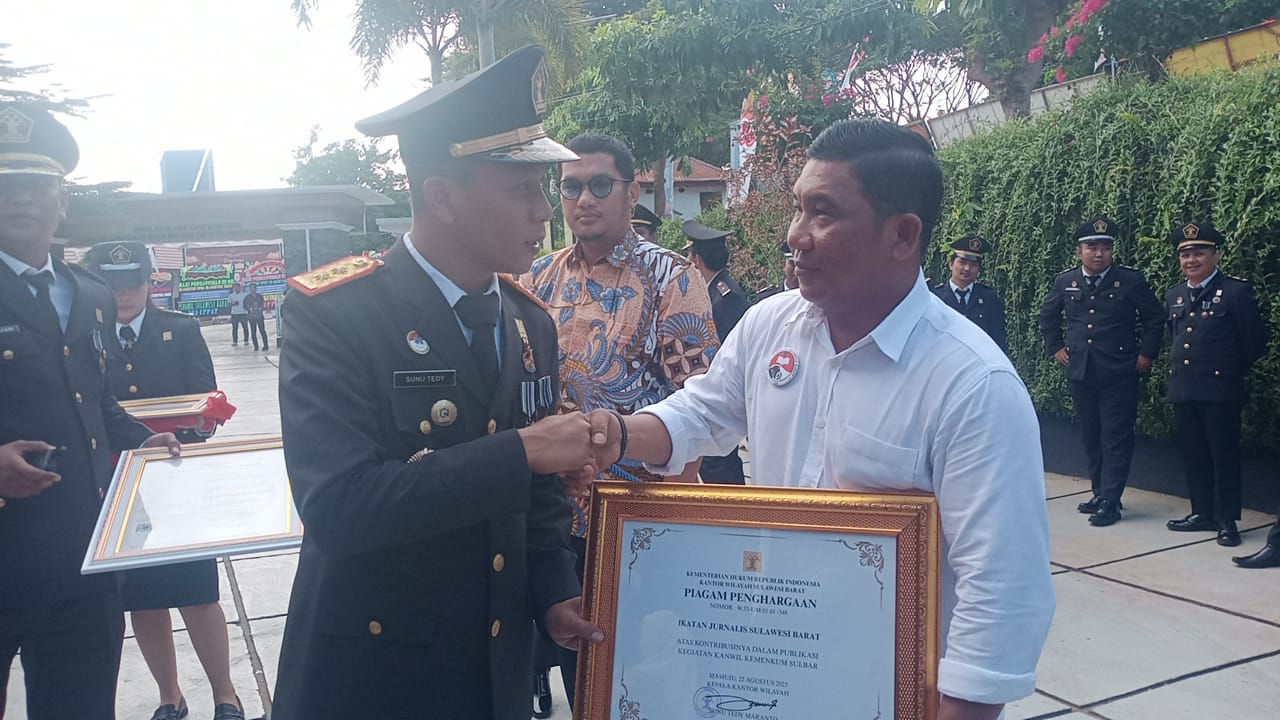 Mamuju, Potretrakyat.com; – Organisasi Kewartawanan lokal Ikatan Jurnalis Sulawesi Barat (IJS) menerima piagam penghargaan dari Kantor Wilayah Kementrian Hukum Republik Indonesia (KEMENKUM-RI) Sulawesi Barat (Sulbar), Jumat, 22 Agustus 2025.