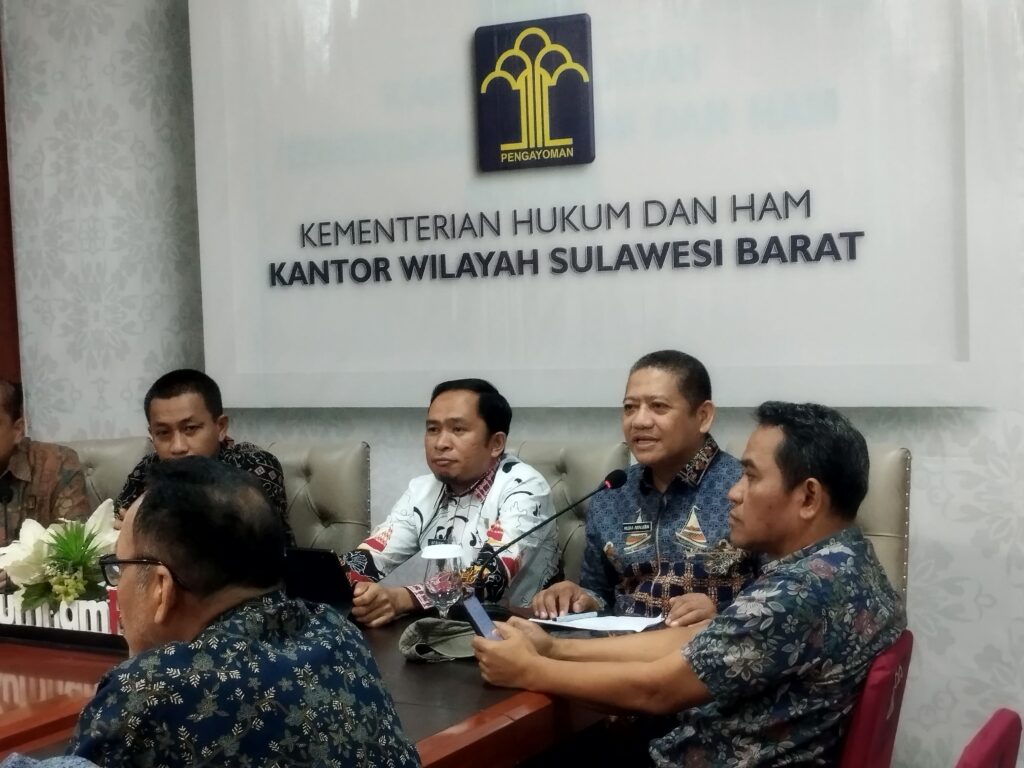Mamuju, Potretrakyat.com; – Kepala Bagian Persidangan Sekretariat DPRD Provinsi Sulawesi Barat, Dr. Musra Awaluddin, bersama pejabat fungsional Sekretariat DPRD menghadiri rapat pengharmonisasian, pembulatan, dan pemantapan konsepsi terhadap Rancangan Peraturan Daerah (Ranperda) Provinsi Sulawesi Barat tentang Pengelolaan Sumber Daya Perikanan dan Kelautan yang dilaksanakan di Kantor Wilayah Kementerian Hukum dan HAM (Kemenkumham) Sulawesi Barat, Kamis 13 Februari 2025.
