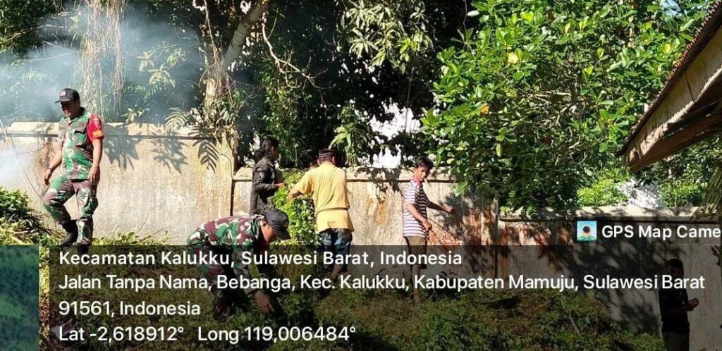 Mamuju, Potretrakyat.com; — Dalam rangka menjaga kebersihan lingkungan sekaligus mencegah potensi timbulnya wabah penyakit, Babinsa Koramil 1418-03/Kalukku melaksanakan kegiatan karya bakti bersama aparat desa di area belakang Kantor Desa Bebanga, Kecamatan Kalukku, Kabupaten Mamuju. Rabu (6/8/2025).