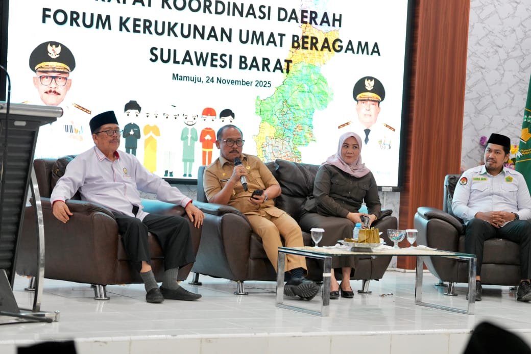Mamuju, Potretrakyat.com; – Gubernur Sulbar, Suhardi Duka (SDK) menghadiri Rapat Koordinasi (Rakor) Daerah Forum Kerukunan Umat Beragama (FKUB) Sulbar yang digelar di Aula Kantor Kanwil Kemenag Sulbar, Senin, 24 November 2025.