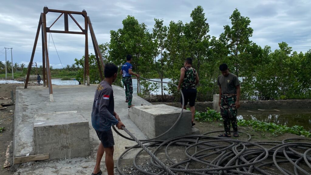 Saat ini, para pekerja di lapangan sedang bekerja keras siang dan malam untuk memastikan jembatan ini berdiri dengan sangat kuat. Mereka sedang memasang kawat-kawat baja pelindung yang tahan karat, memasang kabel seling penopang di bagian bawah, serta menyambungkan pengait angin agar jembatan tetap stabil dan tidak goyang saat cuaca buruk. Semua bagian detail seperti baut penyambung, penjepit besi, hingga pengecatan kerangka baja sedang dilakukan dengan sangat teliti. Hal ini dilakukan demi satu tujuan utama: memastikan jembatan ini aman dilewati oleh siapa saja, baik orang tua, anak sekolah, maupun warga yang membawa hasil kebun.