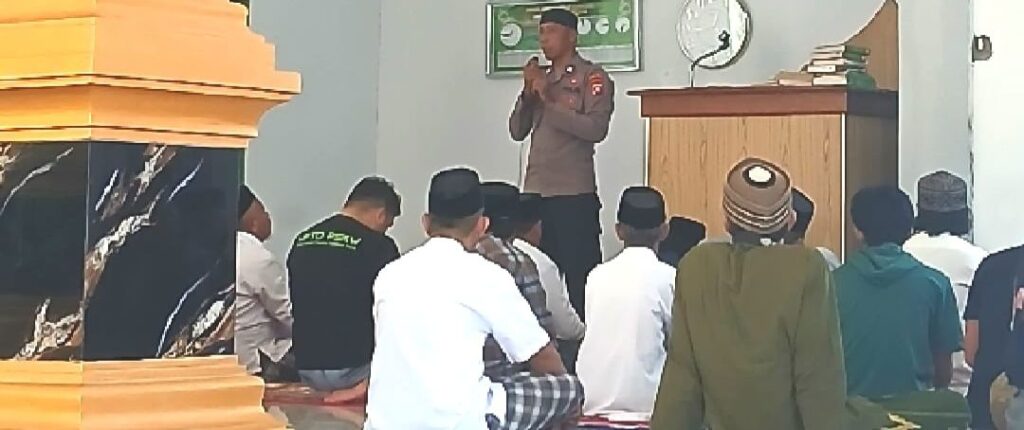 Mamuju, Potretrakyat.com; — Usai melaksanakan ibadah Shalat Jumat secara berjamaah, Kanit Binmas Polsek Mamuju, Aiptu Awaluddin, memberikan himbauan kamtibmas kepada para jamaah Masjid Nur Azizah di Desa Tadui, Kecamatan Mamuju. Jumat, 1 Agustus 2025