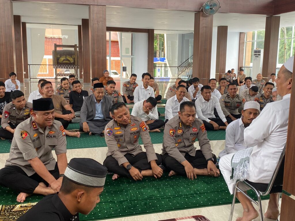Mamuju, Potretrakyat.com; – Kapolda Sulawesi Barat, Irjen Pol. Adi Deriyan Jayamarta, menyampaikan rasa hormat dan apresiasinya atas wejangan rohani yang disampaikan oleh mantan Kapolda Sulbar ke-3, Irjen Pol (Purn) Baharuddin Djafar. Momen berharga ini terjadi di Masjid Jabal Rahmah, Senin (25/8/25), usai pelaksanaan sholat dzuhur berjamaah.