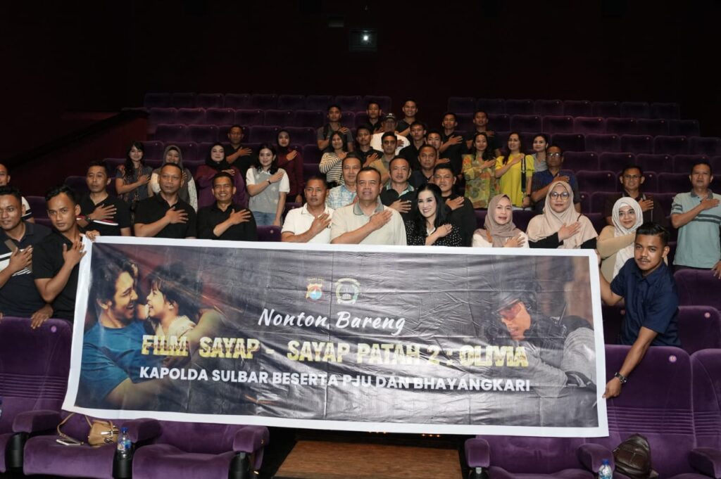 Mamuju, Potretrakyat.com; — Kepolisian Daerah Sulawesi Barat (Polda Sulbar) menggelar nonton bareng (Nobar) film “Sayap-Sayap Patah 2” di Bioskop Matos, Mamuju, Senin (12 Mei 25). Acara ini dihadiri Kapolda Sulbar Irjen Pol. Adang Ginanjar beserta Ketua Bhayangkari Ny. Miranti Adang, Wakapolda Brigjen Pol. Rachmat Pamudji, pejabat utama, dan personel Polda Sulbar.