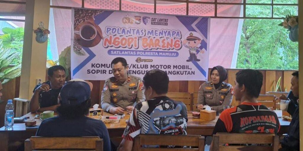 Mamuju, Potretrakyat.com; — Satuan Lalu Lintas (Satlantas) Polresta Mamuju terus melakukan pendekatan humanis kepada masyarakat, khususnya para pengguna jalan. Bertempat di salah satu warung kopi (warkop) di Kota Mamuju. Kamis, 7 Agustus 2025