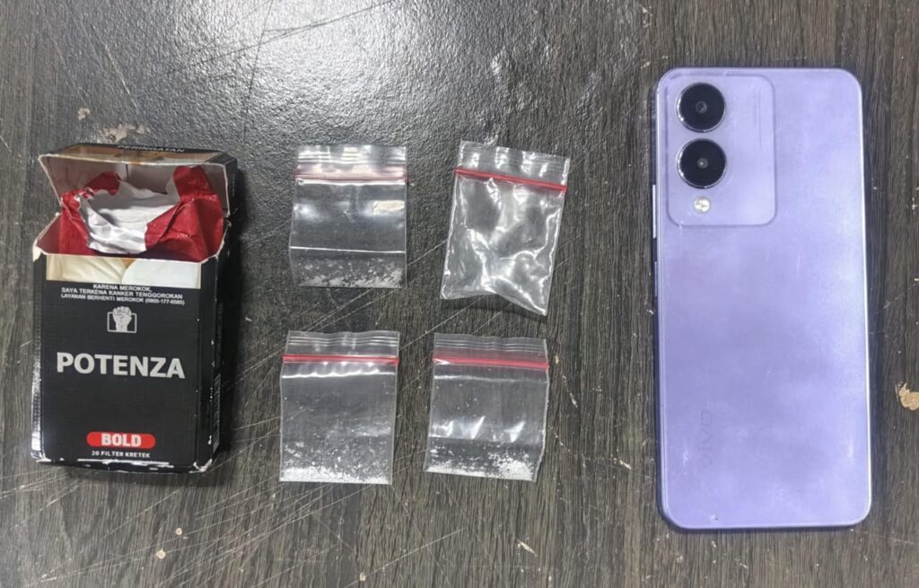 Barang bukti yang ditemukan di tangan G cukup signifikan yaitu tiga saset sedang berisi kristal bening diduga sabu, satu saset kosong ukuran sedang, satu bungkus rokok dan satu unit handphone android.