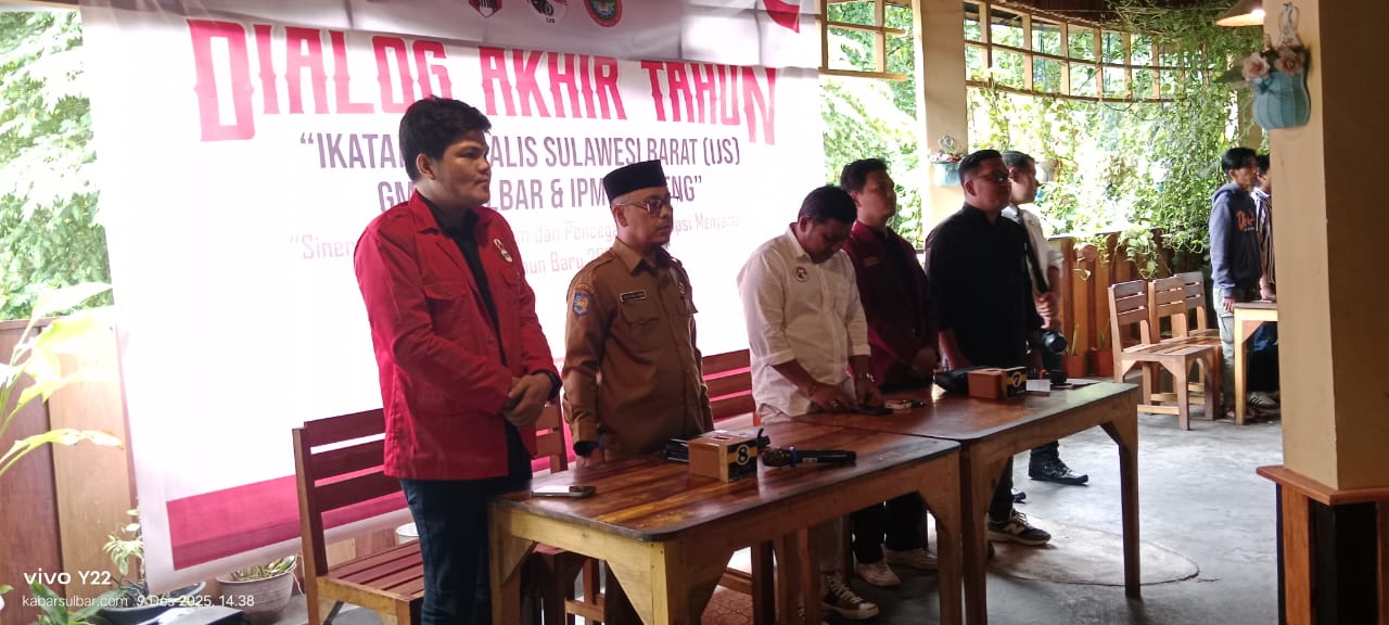 Mamuju, Potretrakyat.com; — Ikatan Jurnalis Sulawesi Barat (IJS), sukses menyelenggarakan Dialog Akhir Tahun yang strategis di Mamuju. Menggandeng Gerakan Mahasiswa Nasional Indonesia (GMNI) Sulbar dan Ikatan Pelajar Muhammadiyah (IPM) Mamuju Tengah, dialog ini mengangkat tema krusial: “Sinergi Penegakan Hukum dan Pencegahan Korupsi Menyambut Tahun Baru 2026.”