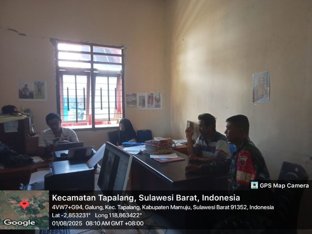 Mamuju, Potretrakyat.com; — Guna memperkuat pemahaman situasi kewilayahan dan mempererat sinergi dengan masyarakat, Babinsa Koramil 1418-02/Tapalang, Kopda Muh Asri, melaksanakan kegiatan Pengumpulan Data Teritorial (Puldata) di wilayah Kecamatan Tapalang, Kabupaten Mamuju. Jumat (1/8/2025).