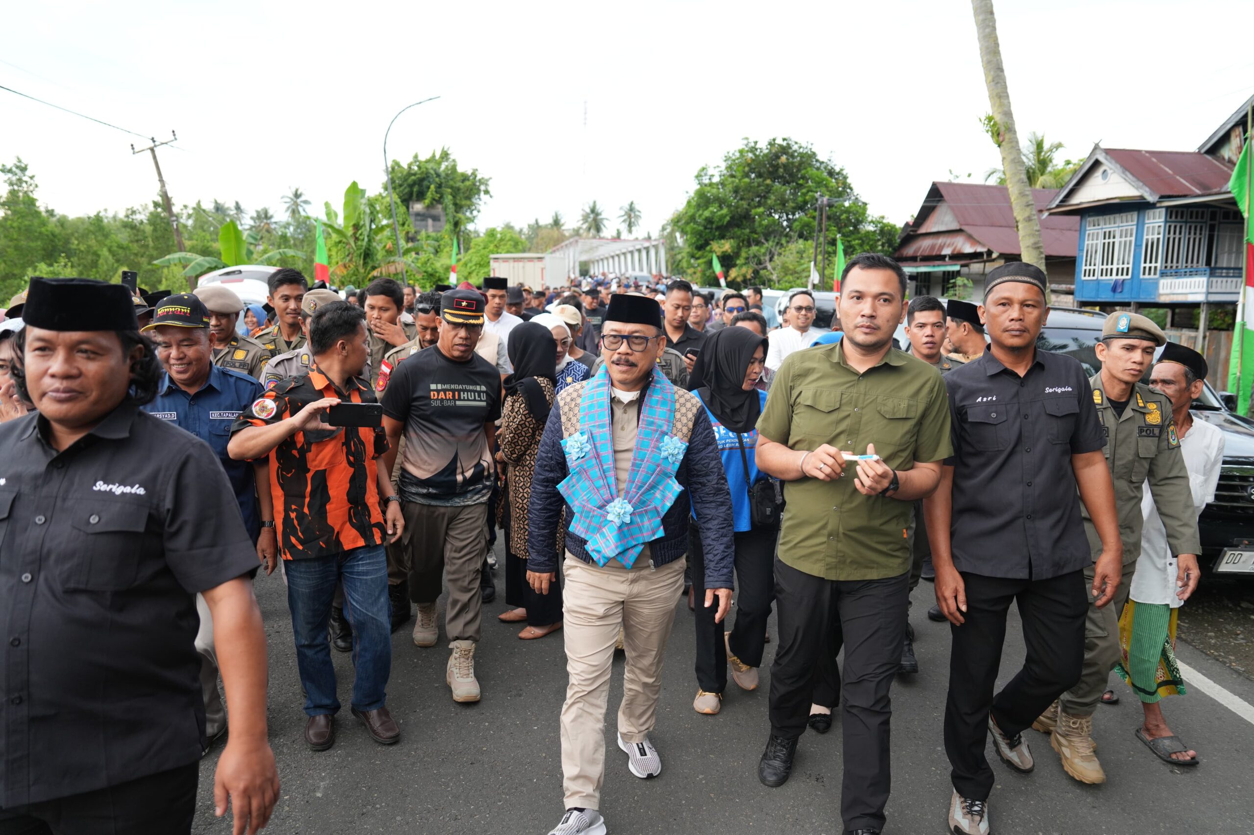 “Dari tadi malam warga sudah mempersiapkan penyambutan. Saya sendiri datang sejak pukul 06.00 pagi dan bersyukur bisa menyambut kedatangan Gubernur dan Bupati,” ujar Jasria.