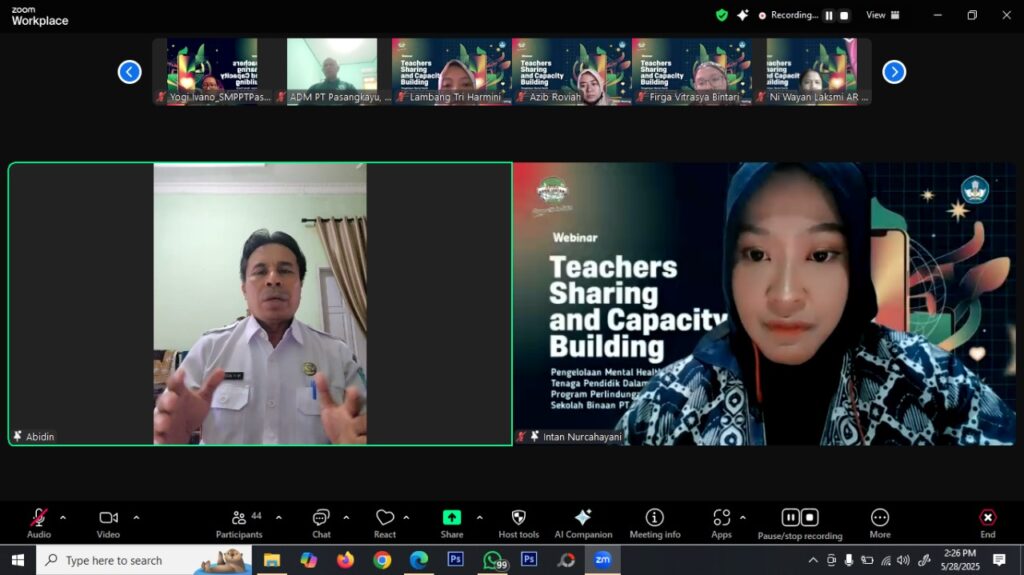 Kegiatan webinar ini berlangsung secara daring melalui platform zoom diikuti sekitar 70 guru yang antusias mendalami konsep psikologi positif sebagai pendekatan baru dalam dunia pendidikan.