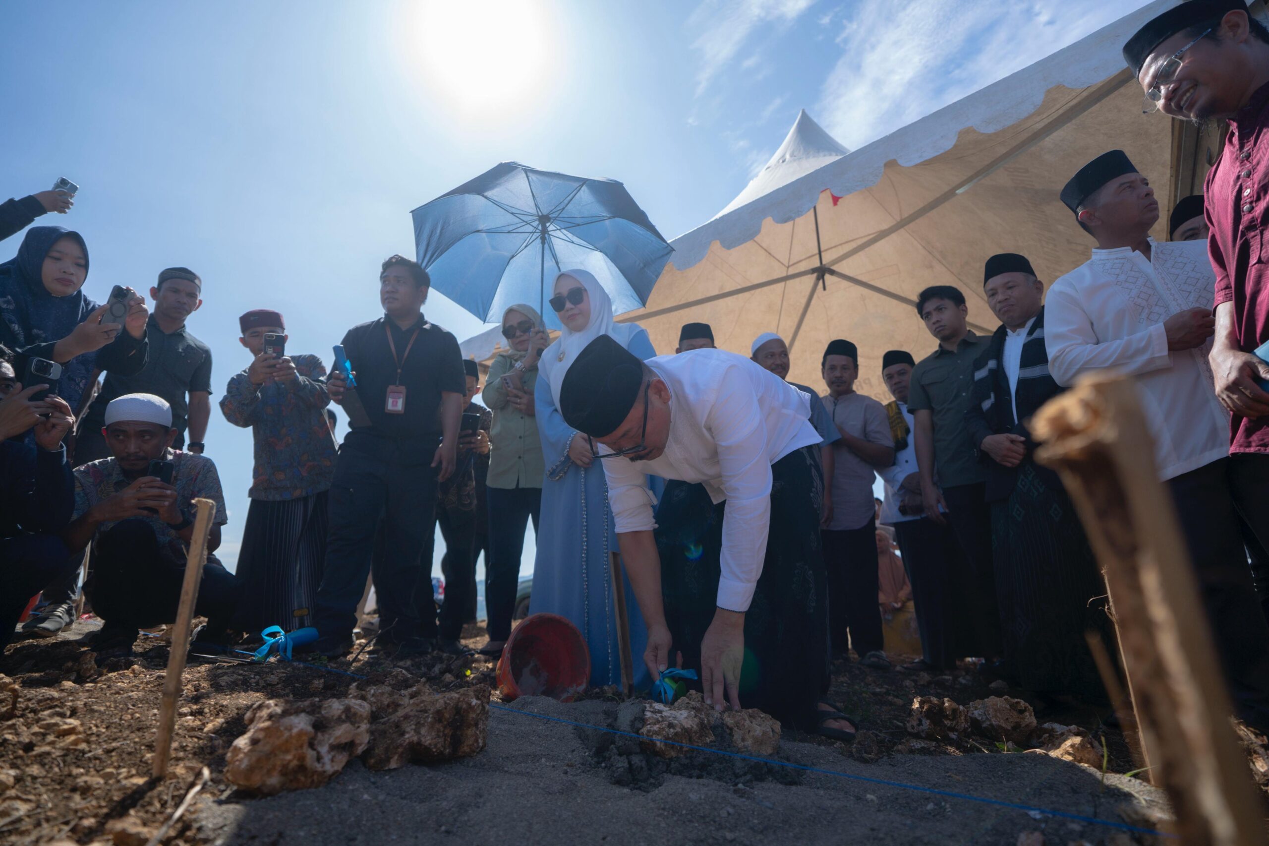 Mamuju, Potretrakyat.com; – Gubernur Sulbar, Suhardi Duka bersama Bupati Mamuju Sitti Sutinah Suhardi melakukan peletakan batu pertama pembangunan Masjid An-Nur Tanete Guru, Lingkungan Danga Kelurahan Binanga, Mamuju dirangkaikan peringatan Isra’ Mi’raj Nabi Muhammad SAW Jumat, 16 Januari 2026.