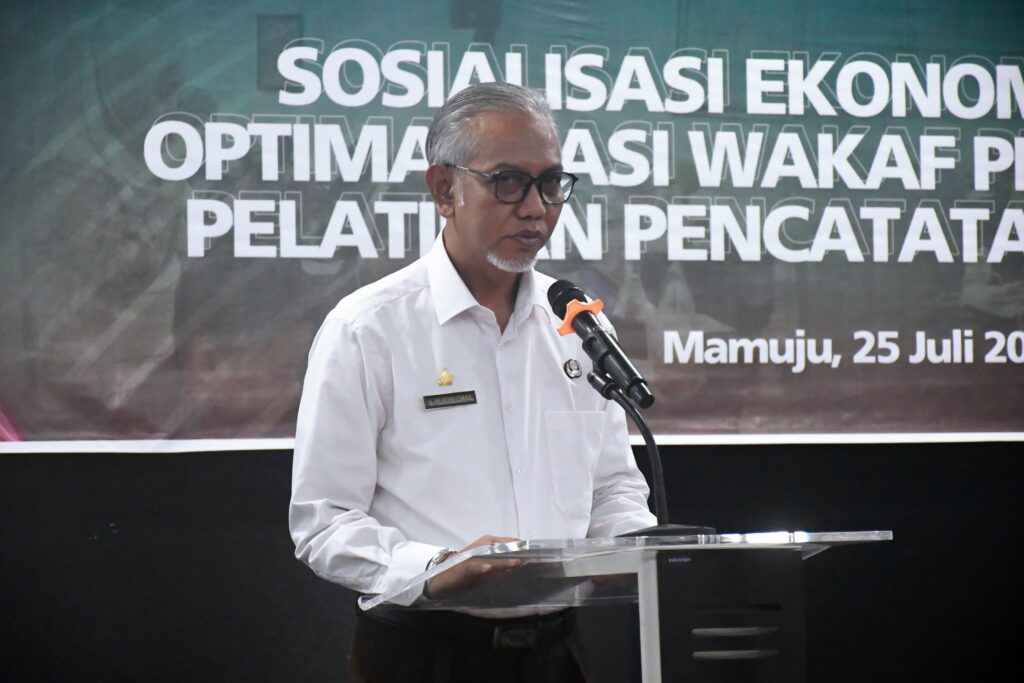 Mamuju, Potretrakyat.com; – Hadir mewakili Gubernur Sulbar, Suhardi Duka, Pelaksana Harian (Plh) Sekprov Sulbar yang juga menjabat sebagai Kepala Badan Kepegawaian Daerah (BKD) Sulbar, Herdin Ismail, secara resmi membuka kegiatan Sosialisasi Ekonomi Syariah Talkshow Optimalisasi Wakaf Produktif dan Pelatihan Pencatatan Keuangan, yang diselenggarakan oleh Bank Indonesia Perwakilan Sulbar, di Hotel Matos, Mamuju, Jumat (25/7/2025).