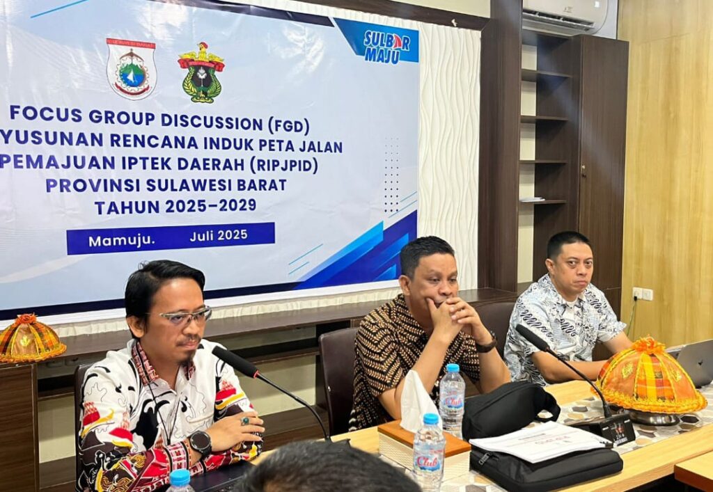Mamuju, Potretrakyat.com; – Pemprov Sulbar melalui Bapperida menggelar Focus Group Discussion (FGD) guna menyempurnakan dokumen Rencana Induk dan Peta Jalan Pemajuan Ilmu Pengetahuan dan Teknologi Daerah (RIPJPID) Tahun 2025–2029, di Ruang RPJMD Kantor Bapperida Sulbar, Kamis, 11 Juli 2025.