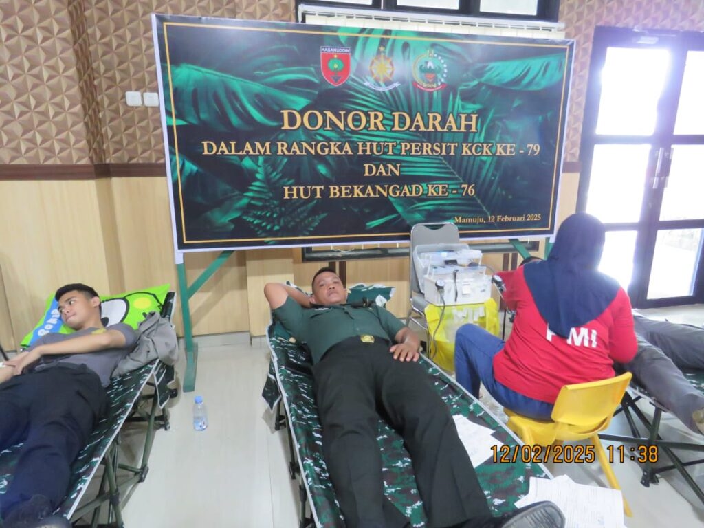 Mamuju, Potretrakyat.com; – Memperingati Hari Ulang Tahun (HUT) ke-79 Persit Kartika Chandra Kirana (KCK) Kodim 1418/Mamuju melaksanakan kegiatan donor darah di Aula Makodim 1418/Mamuju, Rabu (12/02/25).
