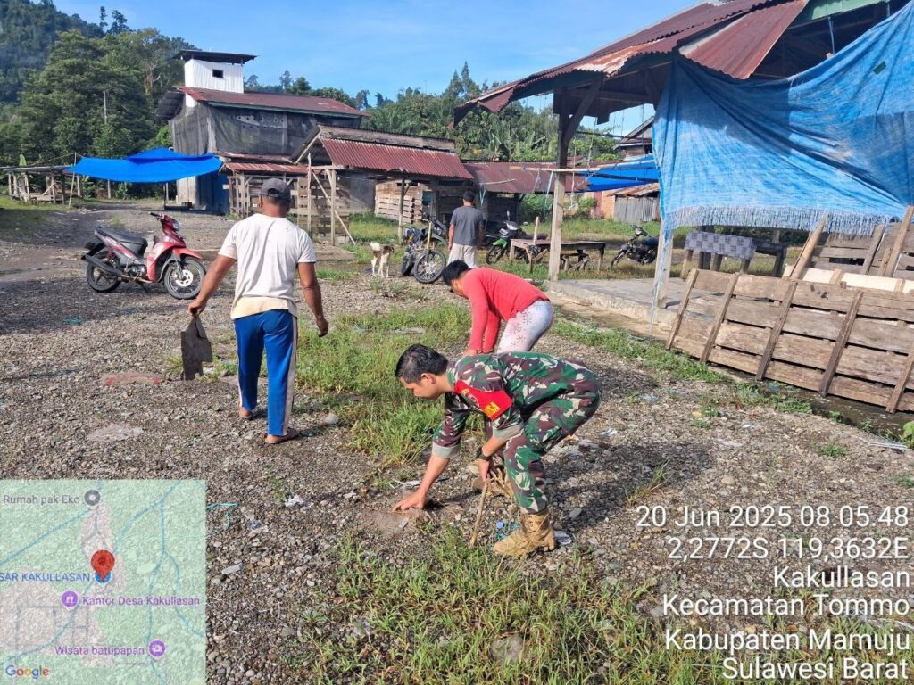 Mamuju, Potretrakyat.com; – Dalam upaya membangkitkan semangat gotong royong dan meningkatkan kesadaran masyarakat terhadap pentingnya kebersihan lingkungan, personel Koramil 1418-03/Kalukku melaksanakan kegiatan karya bakti pembersihan jalan desa di Desa Kalkulasan, Kecamatan Kalukku, Kabupaten Mamuju, Sabtu (28/6/2025).