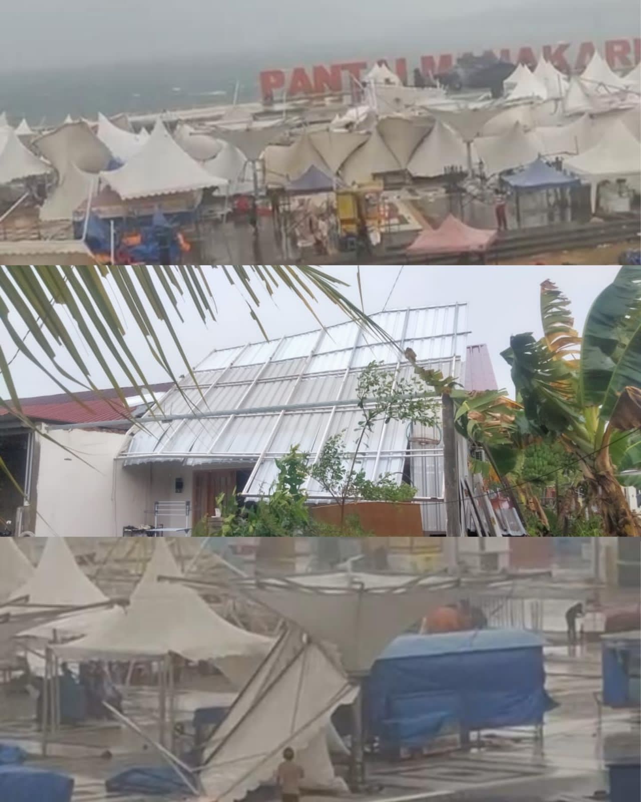 Tenda dan panggung kegiatan Mamuju Festival di Anjungan Manakarra Mamuju rusak dan roboh akibat terpaan angin kencang.