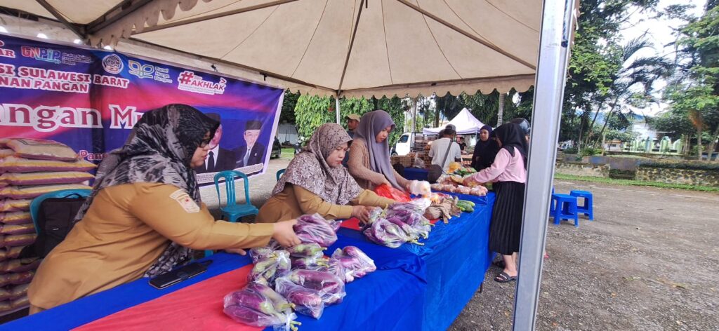 Mamuju, Potretrakyat.com; – Pemprov Sulbar melalui Dinas Ketahanan Pangan Sulbar terus melaksanakan Gerakan Pangan Murah (GPM) atau pasar murah di taman Karema Mamuju, sebagai upaya mengendalikan inflasi agar tidak mengalami kenaikan signifikan, Selasa 1 Juli 2025.