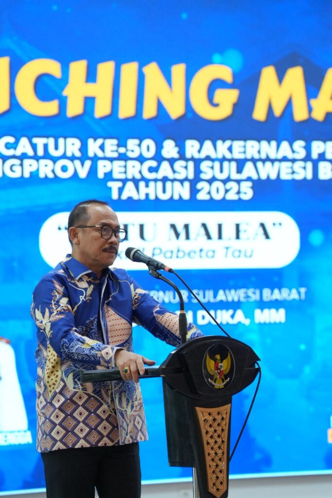 Mamuju, Potretrakyat com; – Gubernur Sulawesi Barat (Sulbar) Suhardi Duka secara resmi meluncurkan maskot Kejuaraan Nasional (Kejurnas) Catur ke-50 dan Rapat Kerja Nasional (Rakernas) Percasi ke-45 yang digelar oleh Pengprov Percasi Sulbar tahun 2025.