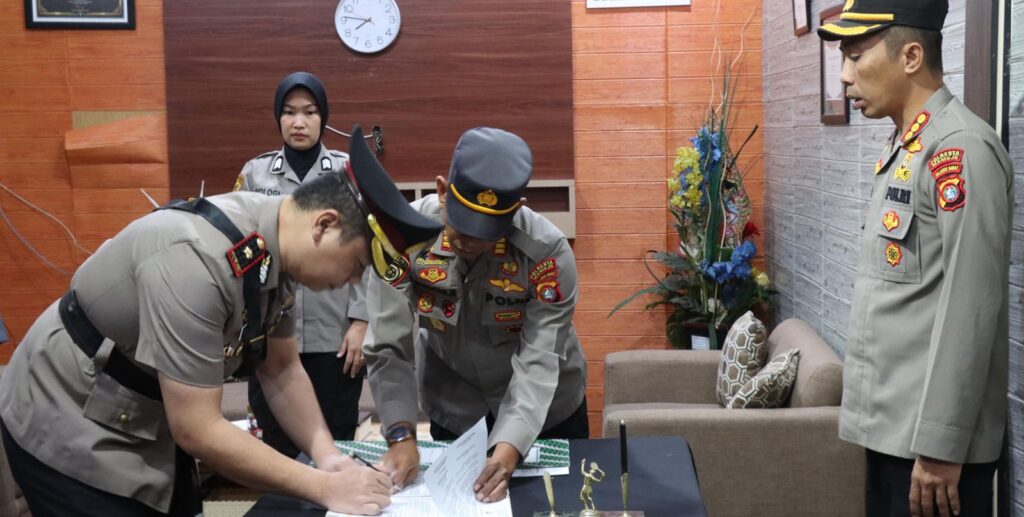 Mamuju, Potretrakyat.com; – Kapolresta Mamuju Kombes Pol Ardi Sutriono memimpin upacara penyematan jabatan kepada pejabat baru Kasat Lantas, Kasat Reskrim, dan Kasat Narkoba Polresta Mamuju yang dilaksanakan di ruang kerja Kapolresta Mapolresta Mamuju, Senin, 21 Juli 2025