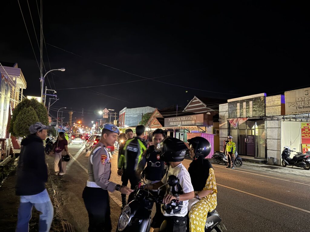 Kegiatan yang dimulai pukul 20.30 hingga 22.00 WITA ini dipusatkan di depan Mapolresta Mamuju dan dipimpin langsung oleh Kasat Lantas Polresta Mamuju, Kompol Febrian Eko Putra, S.I.K.